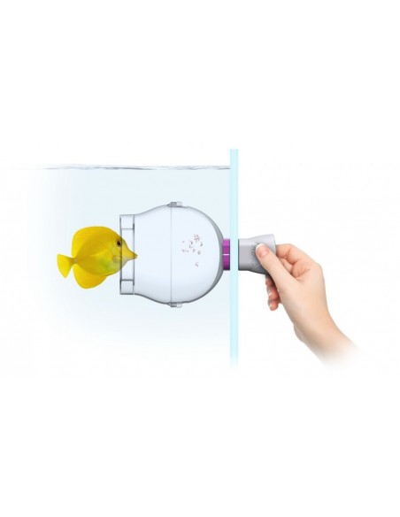 The fish trap can be easily attached to the aquarium pane with the magnetic holder.This enables a flexible position in the aquarium. The trap can be close to the water surfaceso that food can be conveniently added using the pipette supplied.